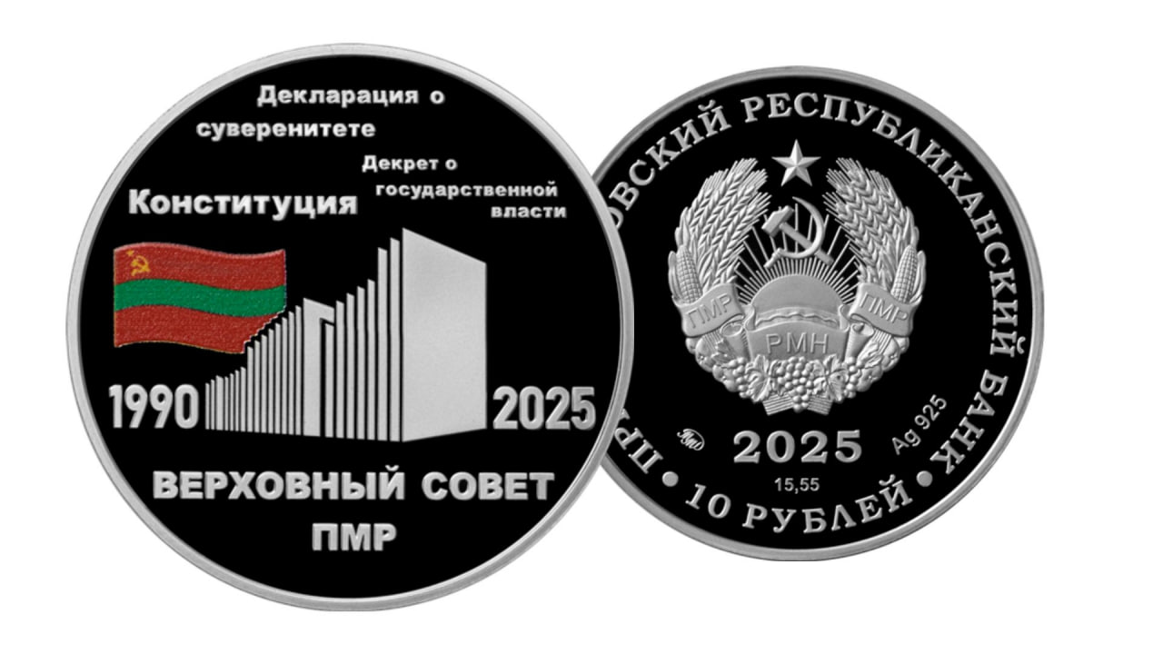 ПРБ выпустил памятную монету в честь 35-летия Верховного Совета ПМР. Номинал – 10 рублей. Тираж – 100 штук.