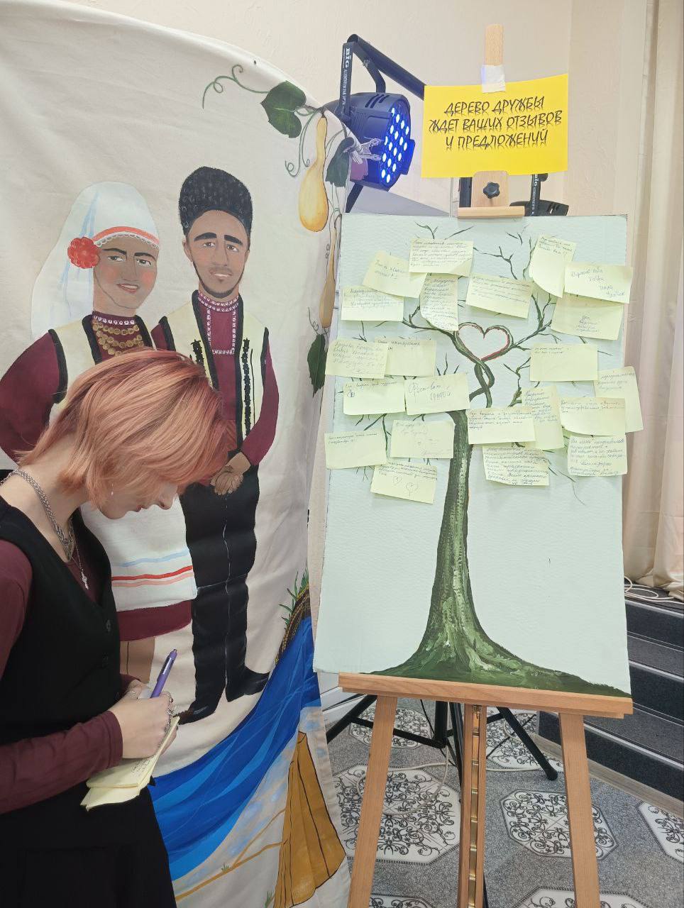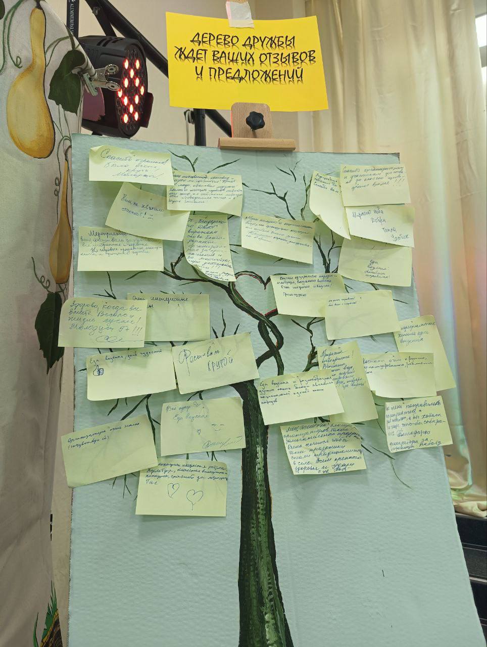 Дерево дружбы. Эта символичная композиция олицетворяет единство и дружбу народов нашего края. Ветки уже заполнились теплыми пожеланиями гостей — каждый листик несет частичку добрых слов и надежд на будущее!