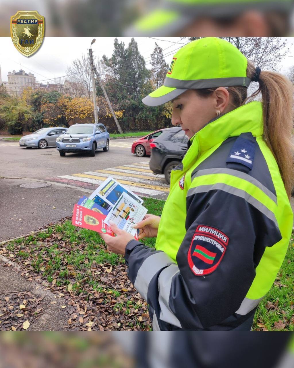 На улицах людям раздают буклеты о ПДД, светоотражающие наклейки и рассказывают, как безопасно переходить дорогу.