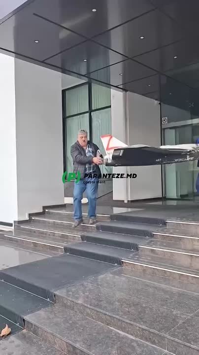 Работяги перед МИДом Молдовы наглядно показали, как дрон приземлился на шиферную крышу сторожки во Флорештах