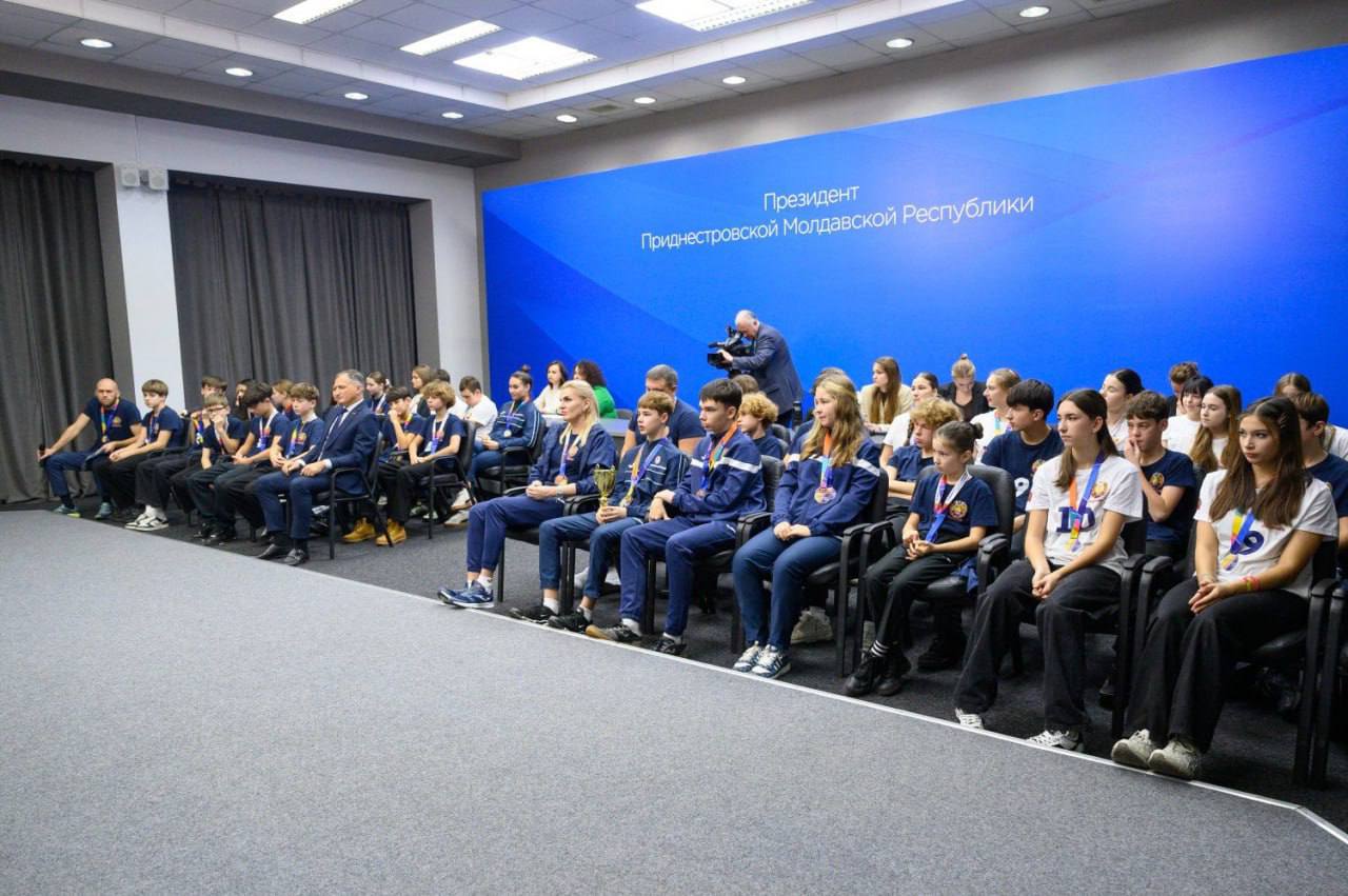 Приднестровская сборная школьников вернулась из Москвы с международного фестиваля спорта. Сегодня 38 юных спортсменов встретились с Президентом ПМР Вадимом Красносельским.