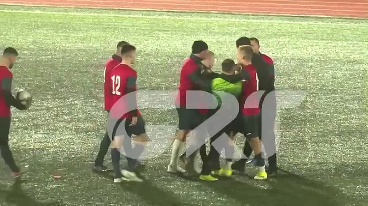 Команда «Еколайф» проигрывала со счётом 2:1, судья назначил в их ворота пенальти. Вратарь пропустил и недовольный пошёл разбираться с судьёй.