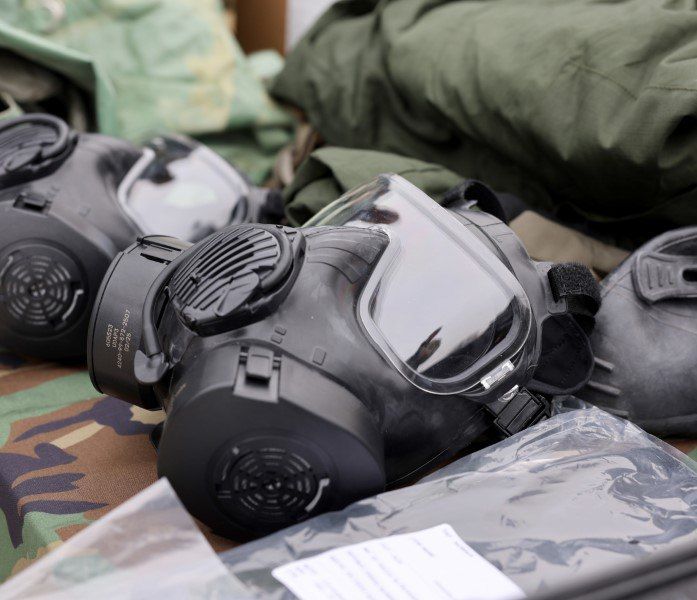 Это шлемы, бронежилеты, защитные костюмы от радиации и химической угрозы, компьютеры и транспорт.