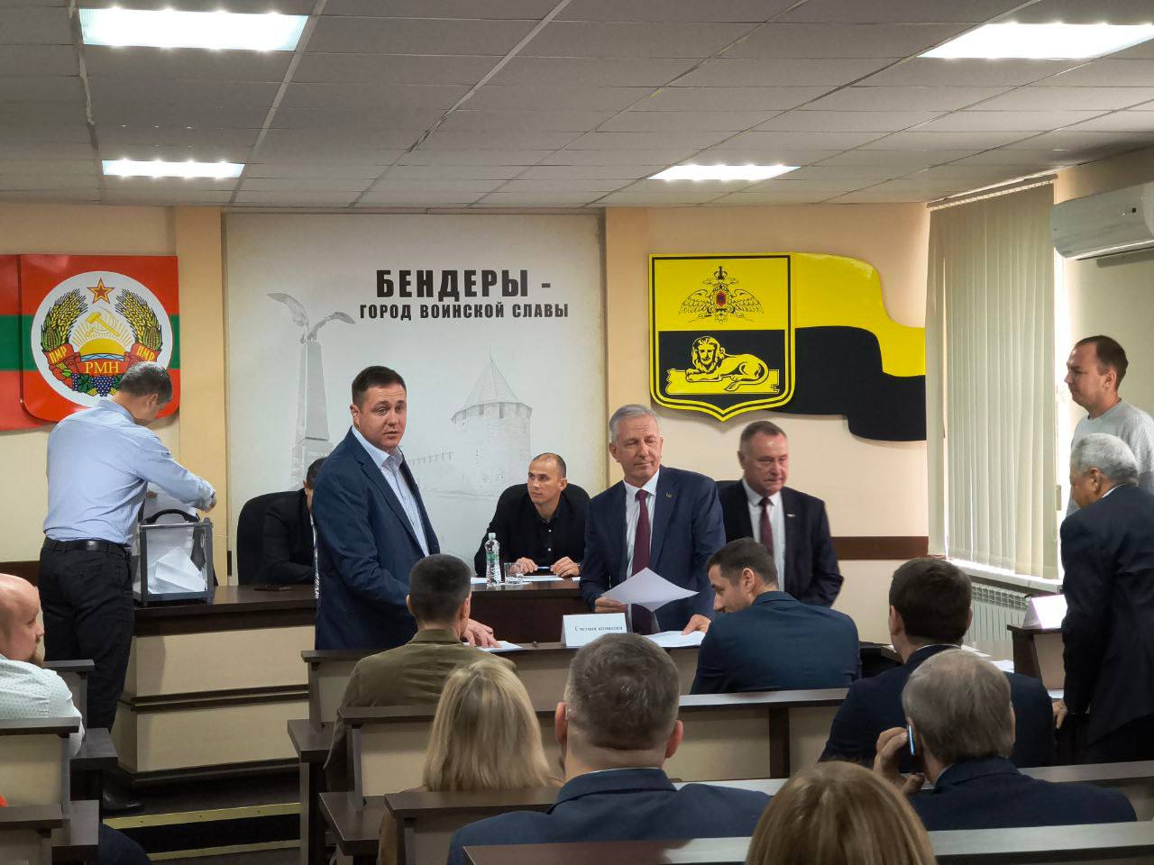 «Коллеги, друзья, товарищи! Поздравляю вас с переизбранием. Особые поздравления - Петру Степановичу, новоизбранному председателю. Сегодня городской совет города Бендеры доказал свою профессиональность. Не случайно есть депутаты, которые переизбираются...