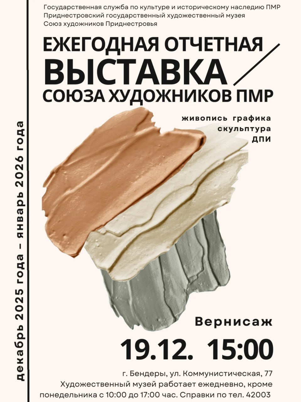 В художественном музее в пятницу откроется отчётная выставка Союза художников ПМР. Живопись, графика, скульптура – более 100 работ, над которыми мастера трудились в этом году.