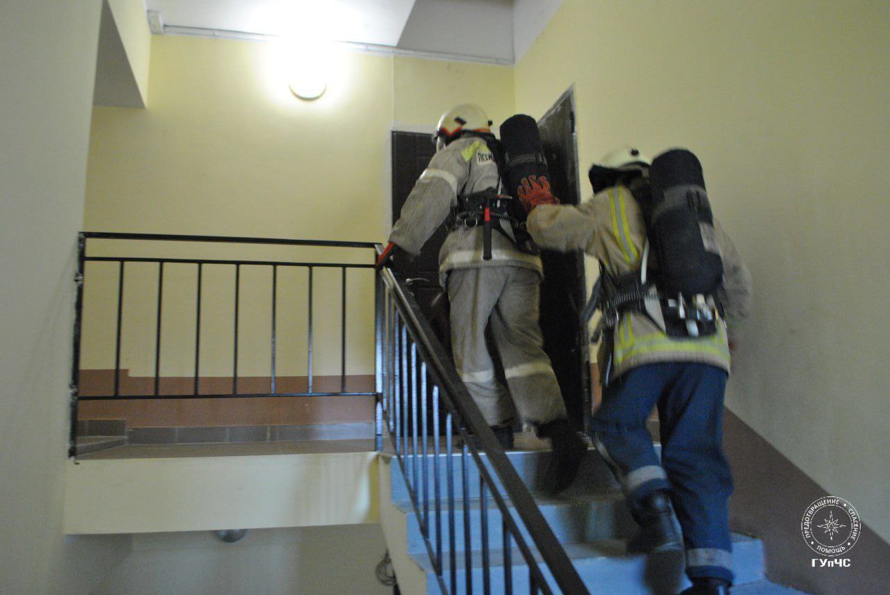 По легенде учений, после взрыва на первом этаже началось возгорание, весь подъезд заволокло дымом. Пожарные оперативно приехали и всё потушили.