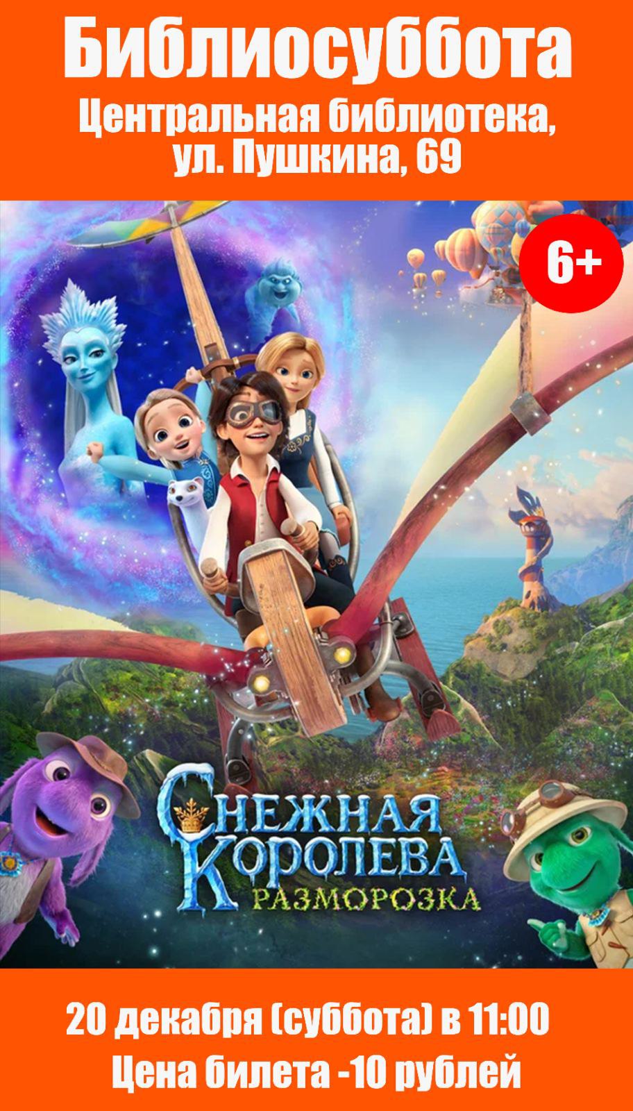 20 декабря в 11:00 маленьких гостей приглашают на увлекательный мультфильм «Снежная Королева. Разморозка».