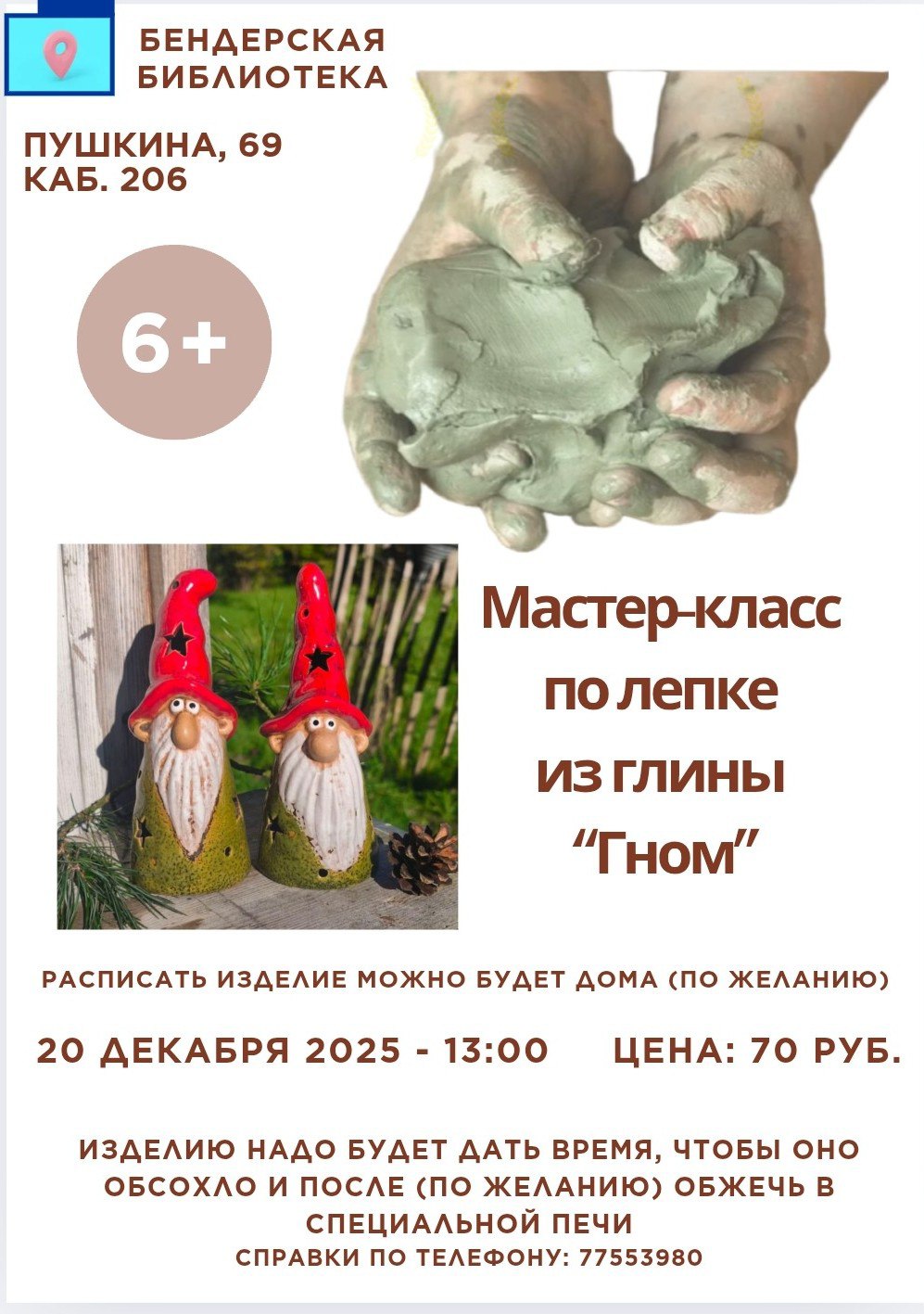 В 13:00 детей ждут на мастер-класс по лепке из глины