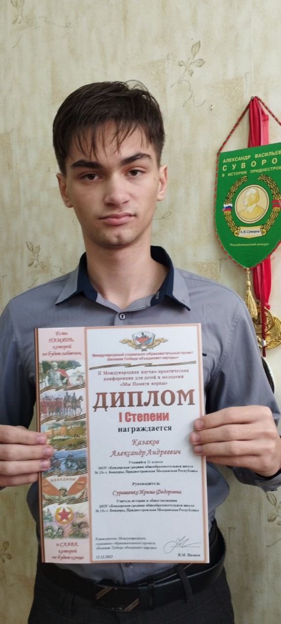 Победа, достойная памяти. Одиннадцатиклассник Александр Казаков, учащийся МОУ «БСОШ №13», занял почетное первое место на II Международной научно-практической конференции для детей и молодежи «Мы памяти верны»