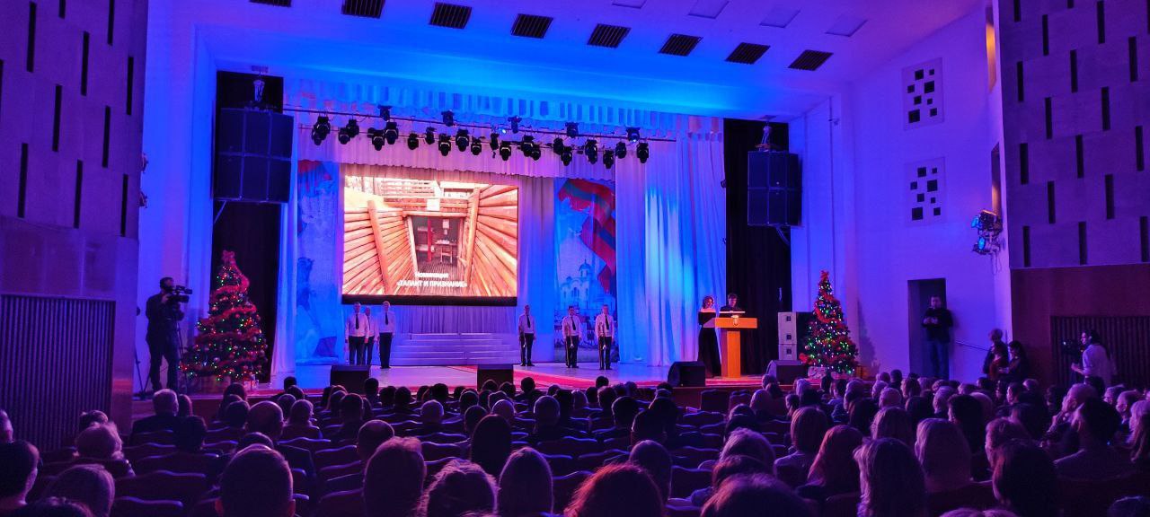 Красная дорожка, камеры, софиты, нарядные ведущие и полный зал. На сцене зажигают танцоры Виорики, аккордеонисты Импрессио, государственный хор и другие таланты.