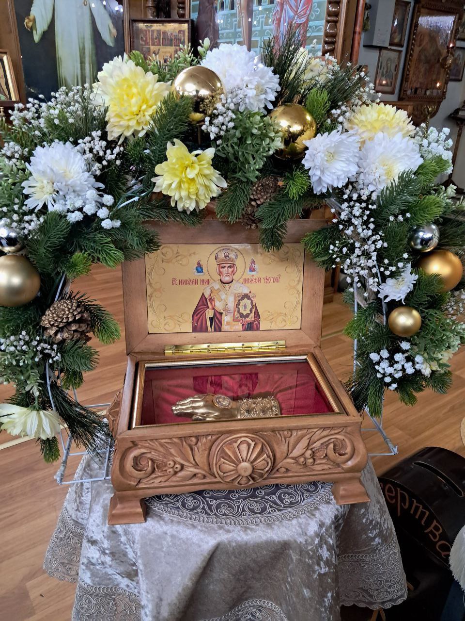 По милости Божией частица мощей этого великого святого, имеющего молитвенное дерзновение перед Престолом Божиим на Небесах, имеется и в нашем Свято-Петропавловском женском монастыре. Для этой великой святыни, которая была установлена в мощевик в виде десницы, был вырезан отдельный деревянный ковчег, и помещен в храме обители, чтобы все верующие нашего края имели доступ к частице мощей святого Николая Чудотворца, и получали скорую помощь от молитвенного обращения и прикосновения к частичке мощей.