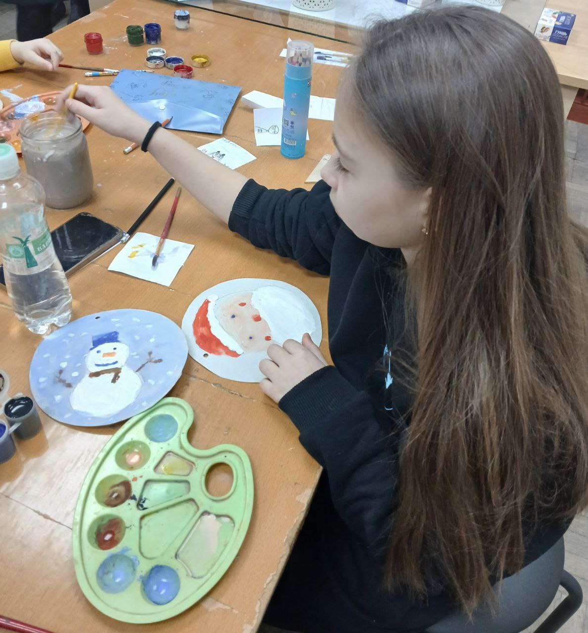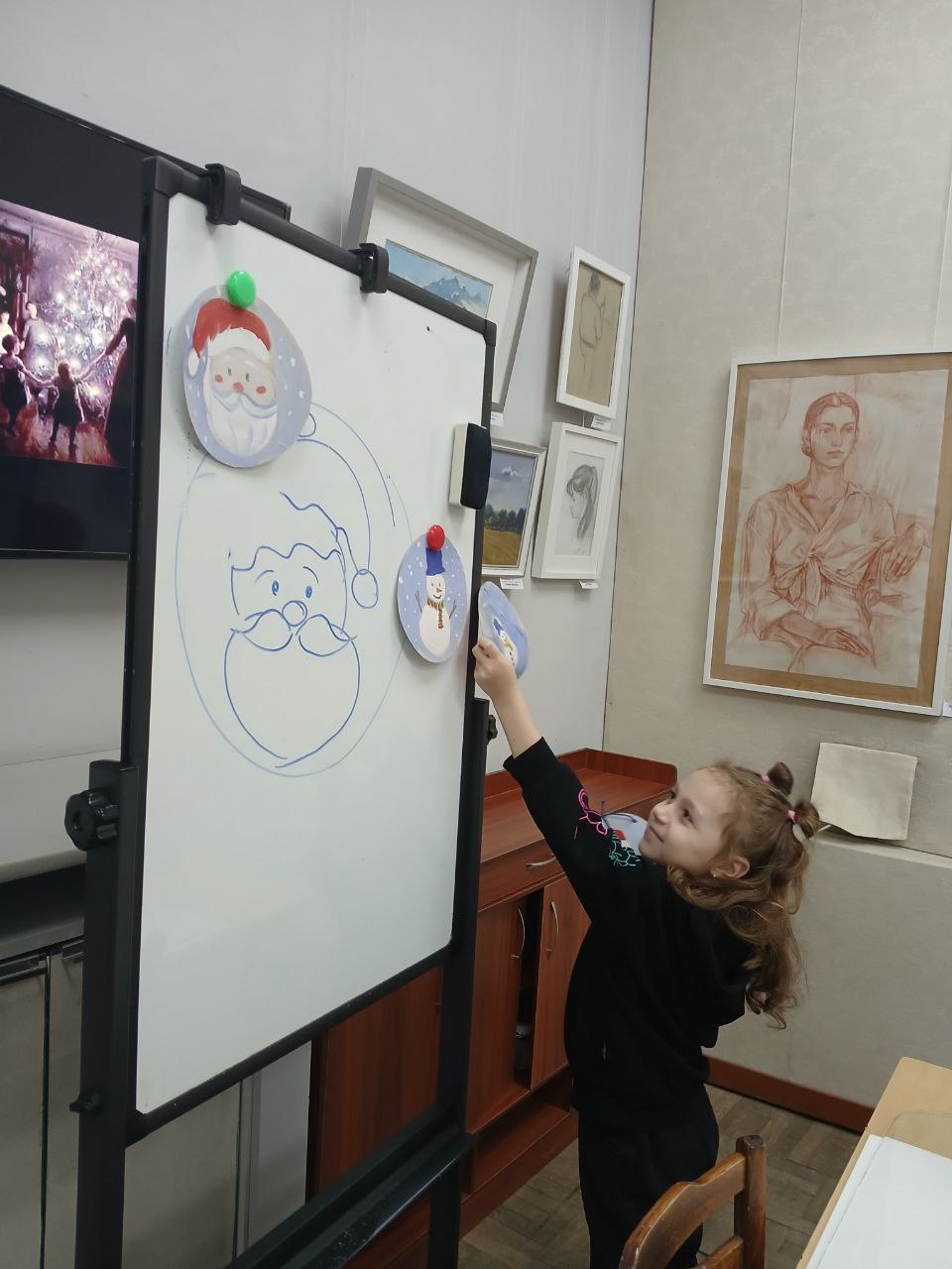В преддверии Нового года в "Волшебной мастерской" ПГХМ юные художники трудились над рисунками, изображая Снеговика и Деда Мороза