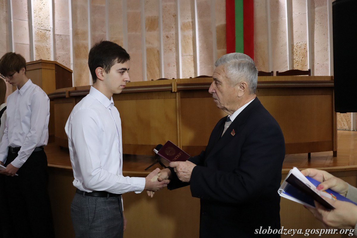 С поздравлениями с государственным праздником и важным жизненным этапом к ребятам обратился глава госадминистрации Слободзейского района и г. Слободзея Василий Тищенко. Он отметил, что получение паспорта – символ вступления во взрослую жизнь и принятия ответственности, поблагодарил родителей и пожелал ребятам здоровья, успехов и уверенности в будущем.