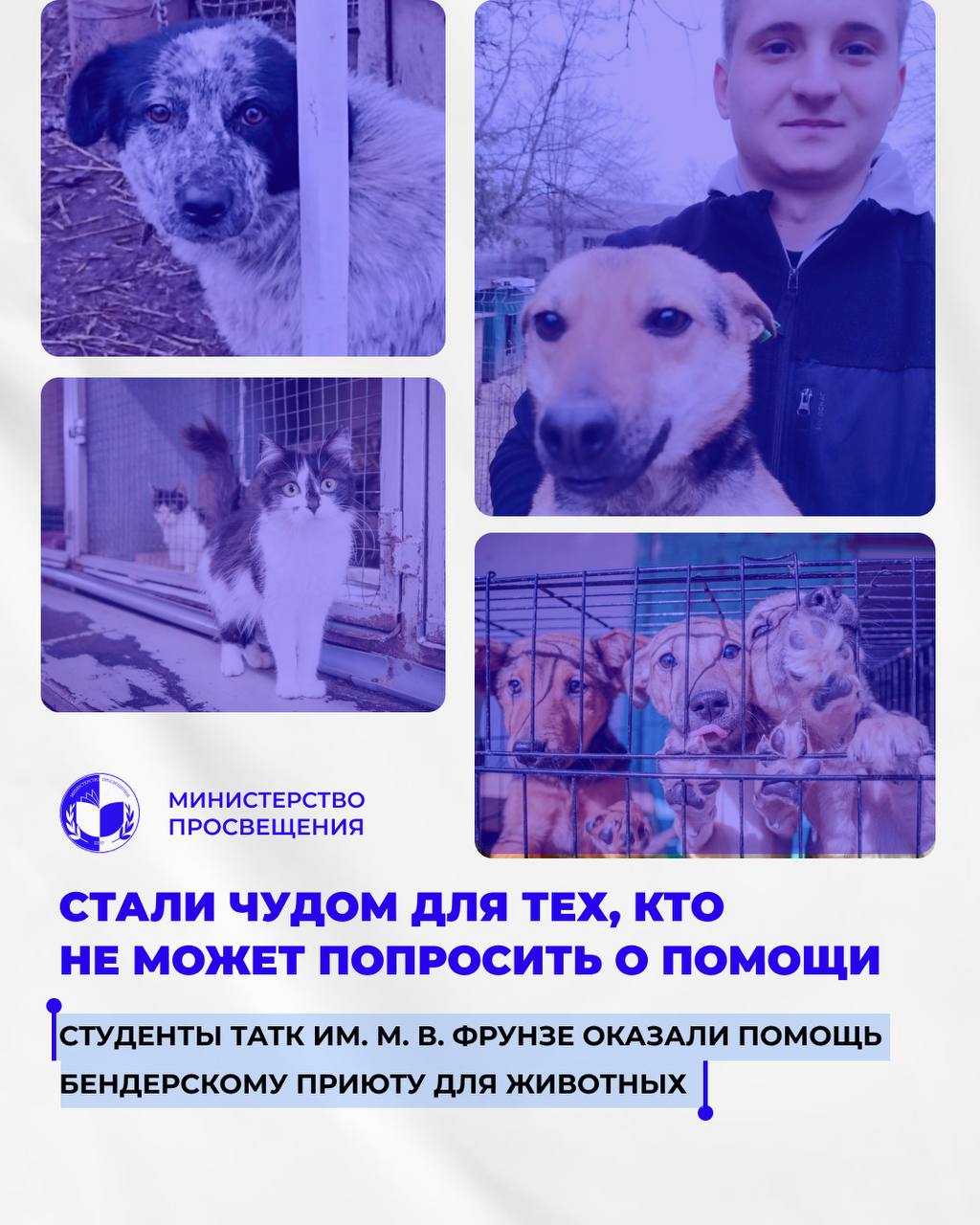 23 декабря волонтёрский отряд Тираспольского аграрно-технического колледжа им. М. В. Фрунзе посетил Бендерский приют для животных. Выезд был организован в рамках благотворительной инициативы по поддержке приюта в зимний период.