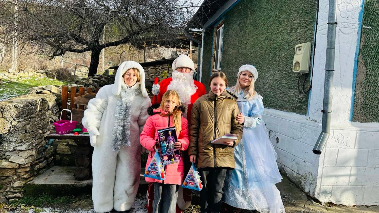Новогодние подарки получили, пообщались с гостями Варя и Ульяна, Катя из г. Рыбница; Настя и Вика из с. Малый Молокиш; Артем, Каролина, Ульяна из с. Белочи.
