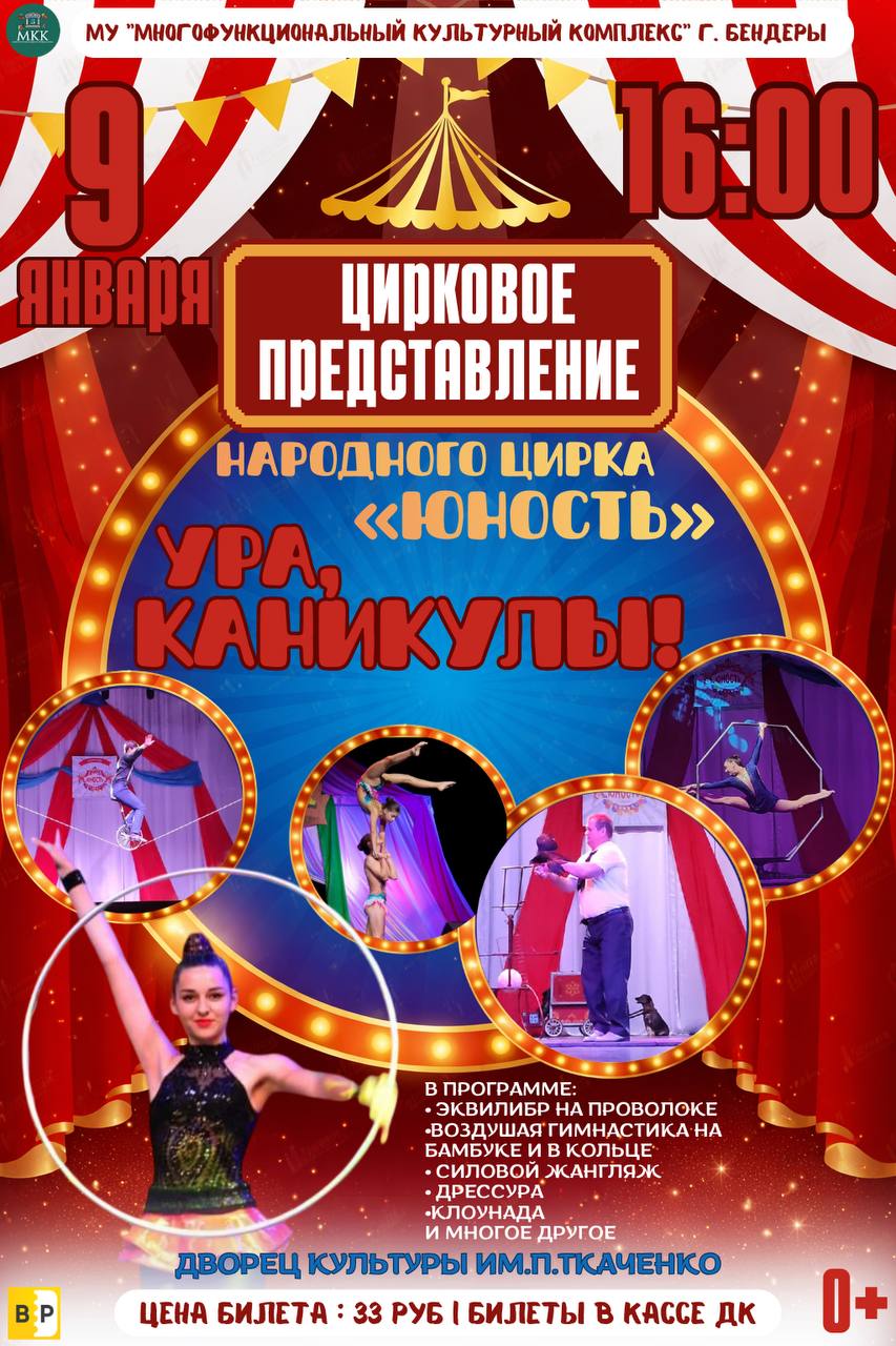 Ура, каникулы продолжаются! А это значит, что пришло время настоящих чудес. Народный цирк «Юность» приглашает детей и взрослых на захватывающее представление, которое подарит улыбки и невероятные эмоции!