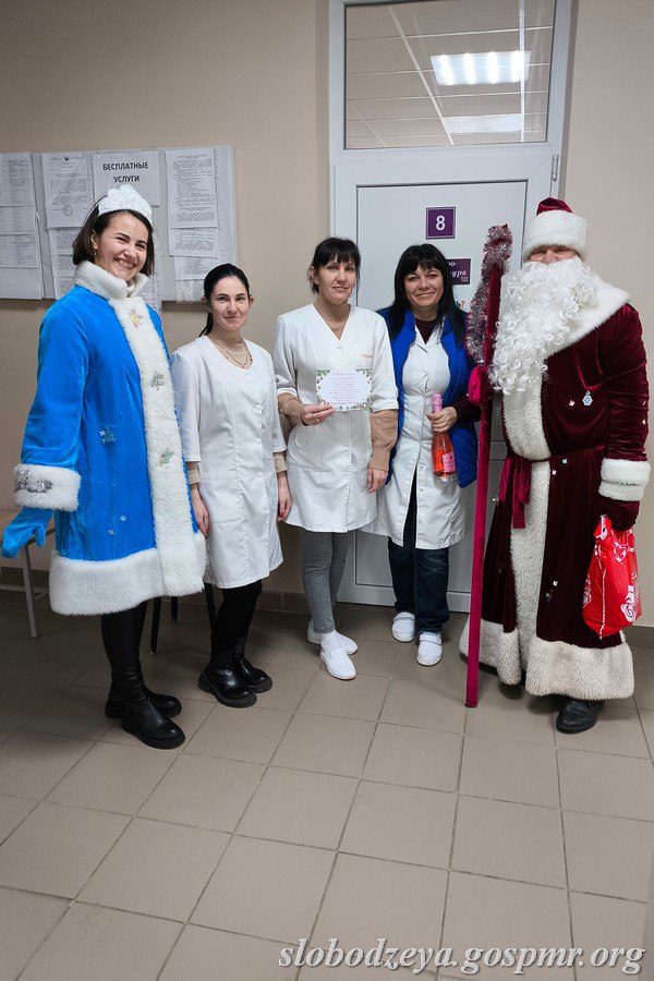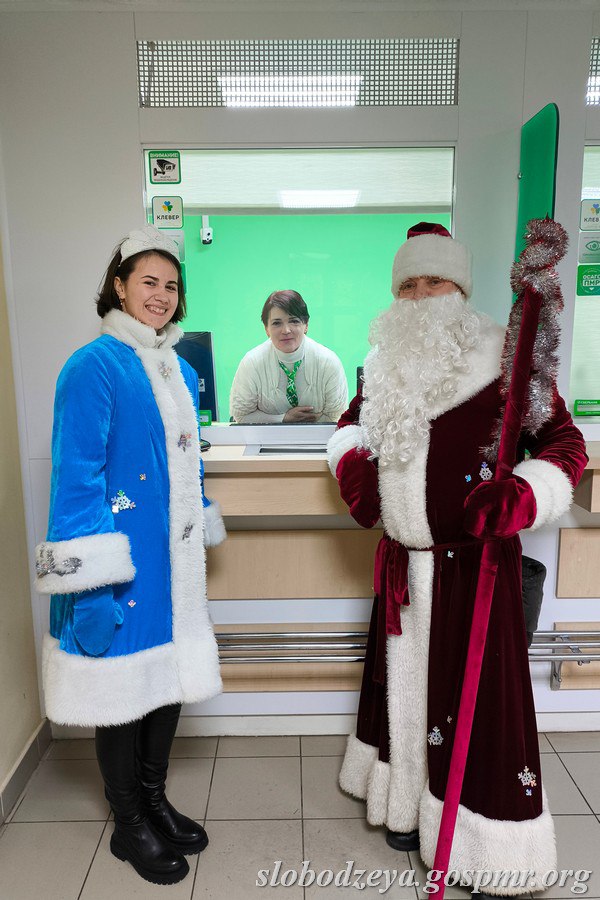 Дед Мороз и Снегурочка поздравили руководителей и коллективы, вручив каждому небольшой праздничный презент.