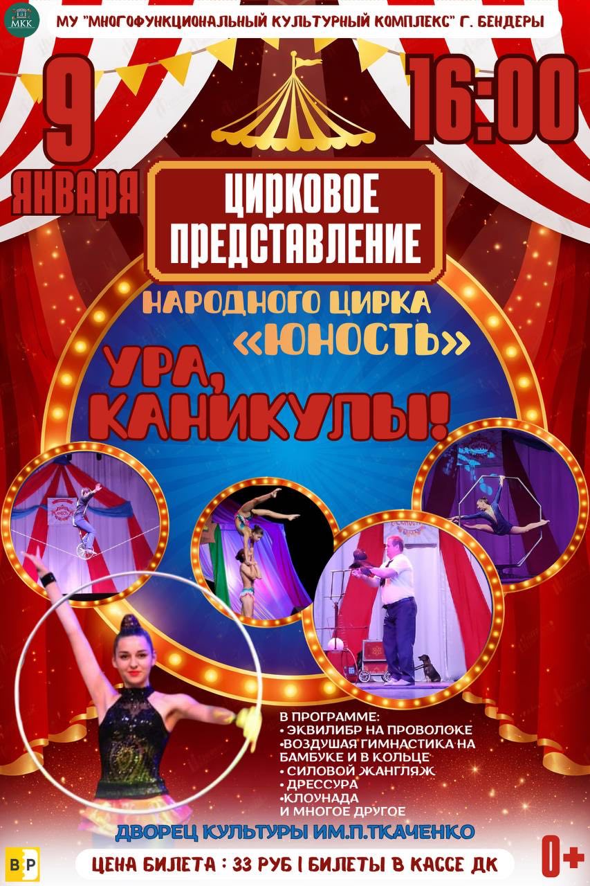 Ура, каникулы продолжаются! А это значит, что пришло время настоящих чудес. Народный цирк «Юность» приглашает детей и взрослых на захватывающее представление, которое подарит улыбки и невероятные эмоции!