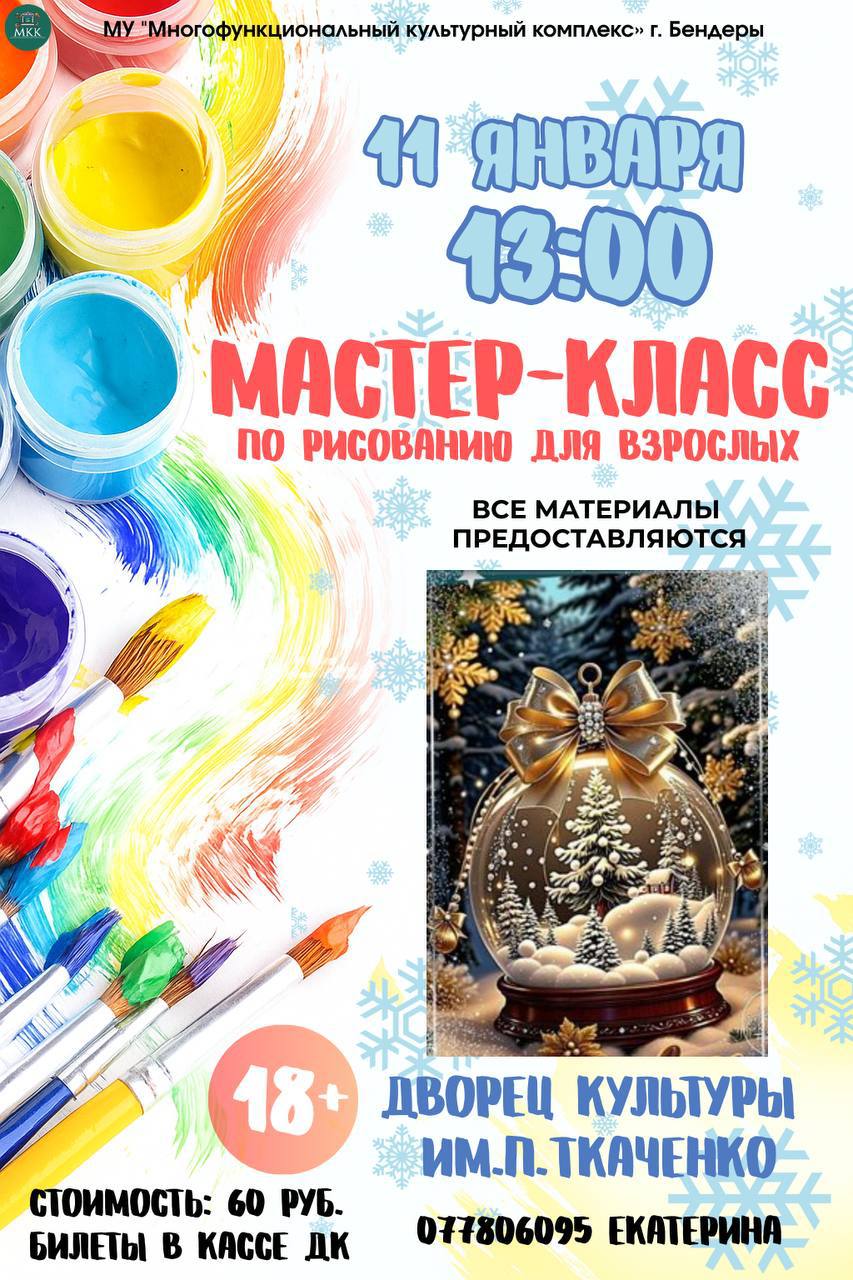 Хотите создать свою собственную новогоднюю сказку на холсте? Вас приглашают на мастер-класс по рисованию для взрослых, где каждый сможет почувствовать себя художником!