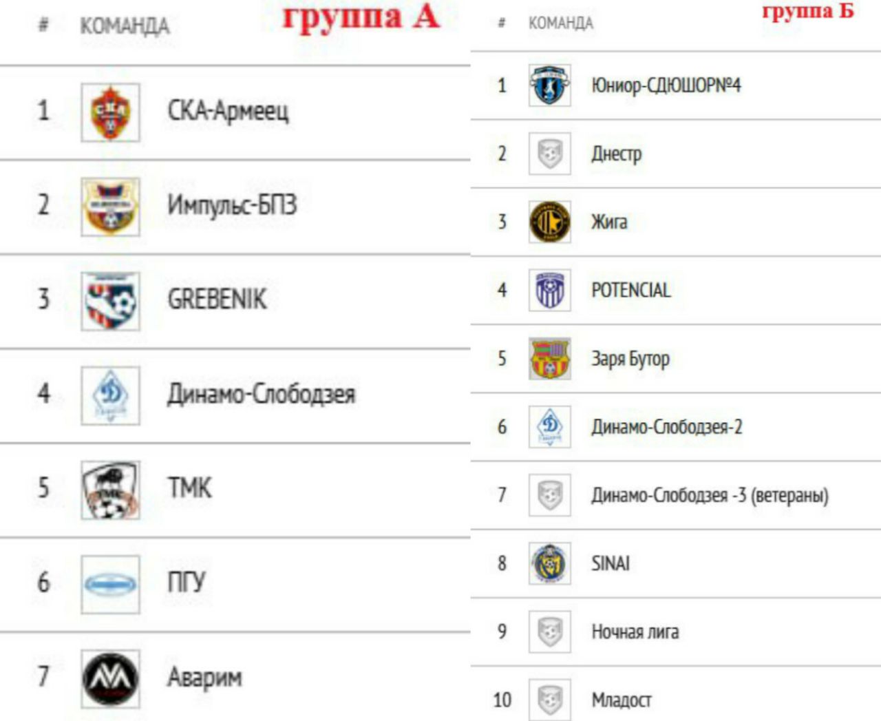 «Динамо-Слободзея» бьет рекорды – клуб выставил три команды, в том числе ветеранскую. Самая молодая команда – Тираспольская СДЮШОР №4 (ср.возраст 17,65), самая возрастная – «Днестр» (ср.возраст 43,13).