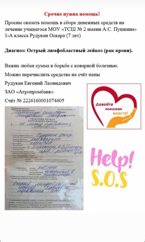 Тираспольчанину Оскару Рудукан нужна помощь. У 7-летнего мальчика рак крови. Деньги собирают на лечение.