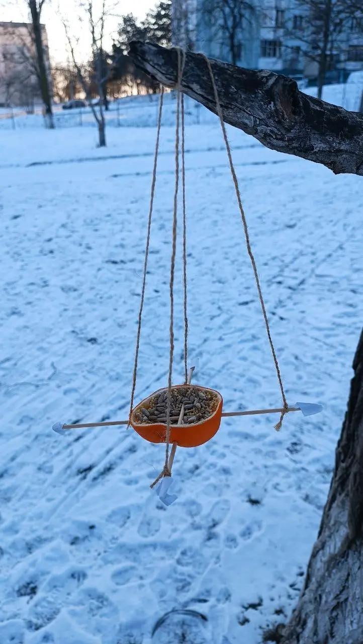 Кормушка из апельсина замечена в Бендерах. Срочно все кормить птиц.