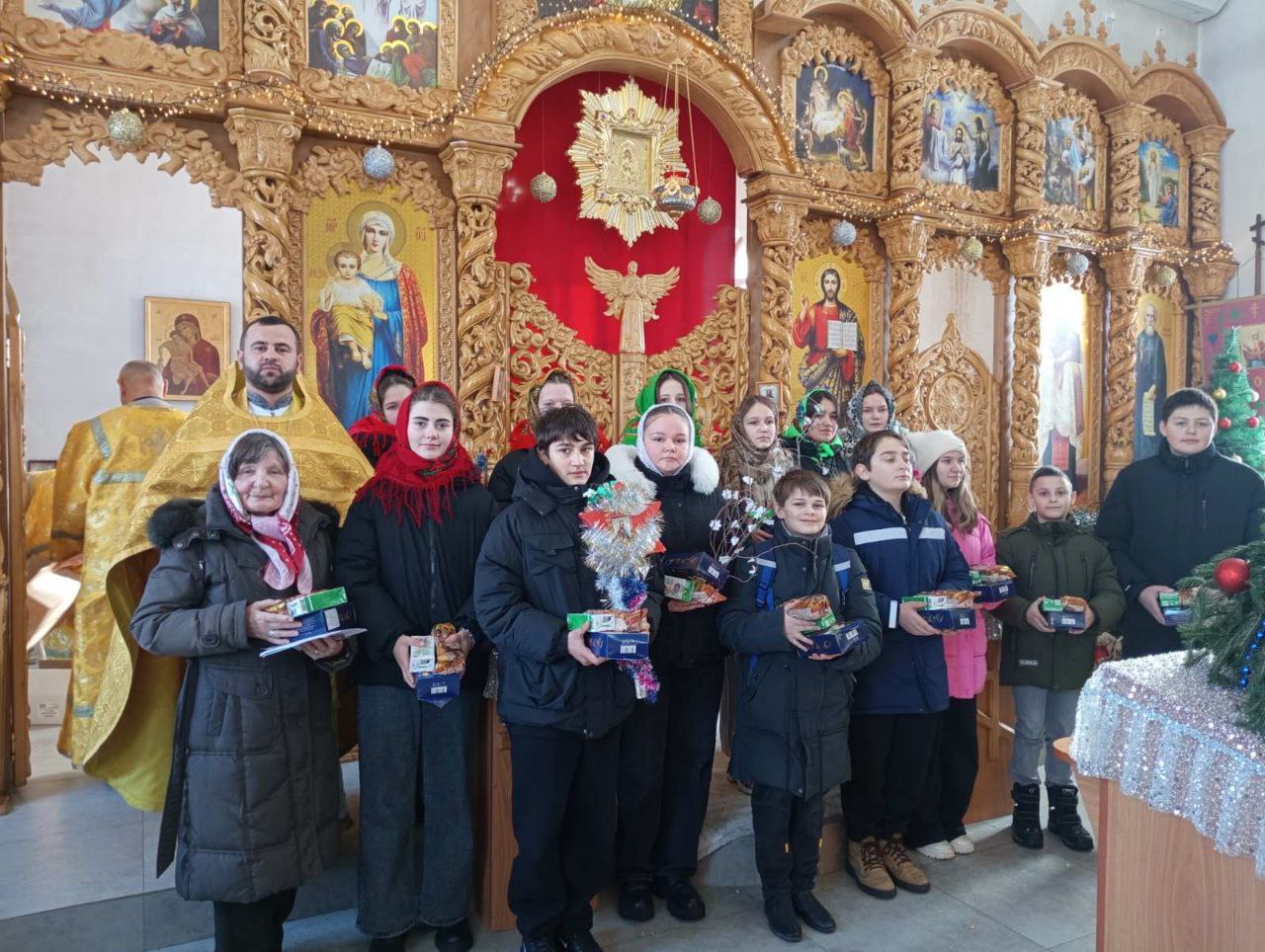 Тёплым и трогательным стало и поздравление учащихся Каменской средней школы № 2 с гимназическими классами. Ребята посетили храм Успения Пресвятой Богородицы в городе Каменка, где поздравили настоятеля и прихожан с праздниками, исполнив традиционные рождественские песнопения.