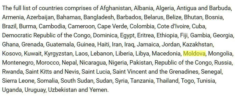Молдова попала под запрет на выдачу американских иммиграционных виз вместе с 74 другими странами.