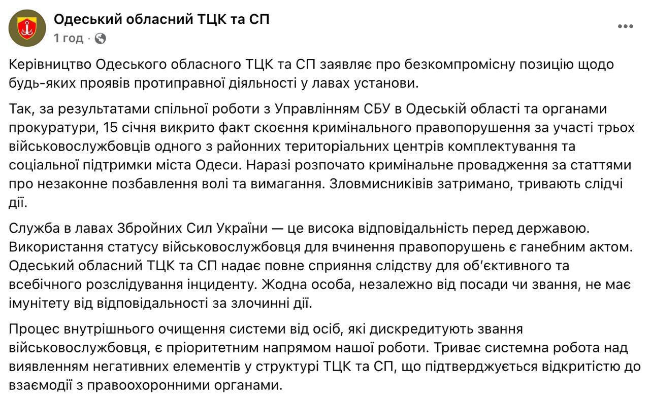 В Одессе трое людоловов и "общественный помощник ТЦК", похитили гражданского и возили в бусе по городу требуя $6000 выкупа, чтобы не доставлять его в ТЦК, — прокуратура. По сообщениям жителей такое сейчас происходит во всех более менее крупных городах. И даже в этом случае одесситы считают что это просто показуха после заявлений Федорова о том что теперь будет новый подход к отлову "добровольцев".