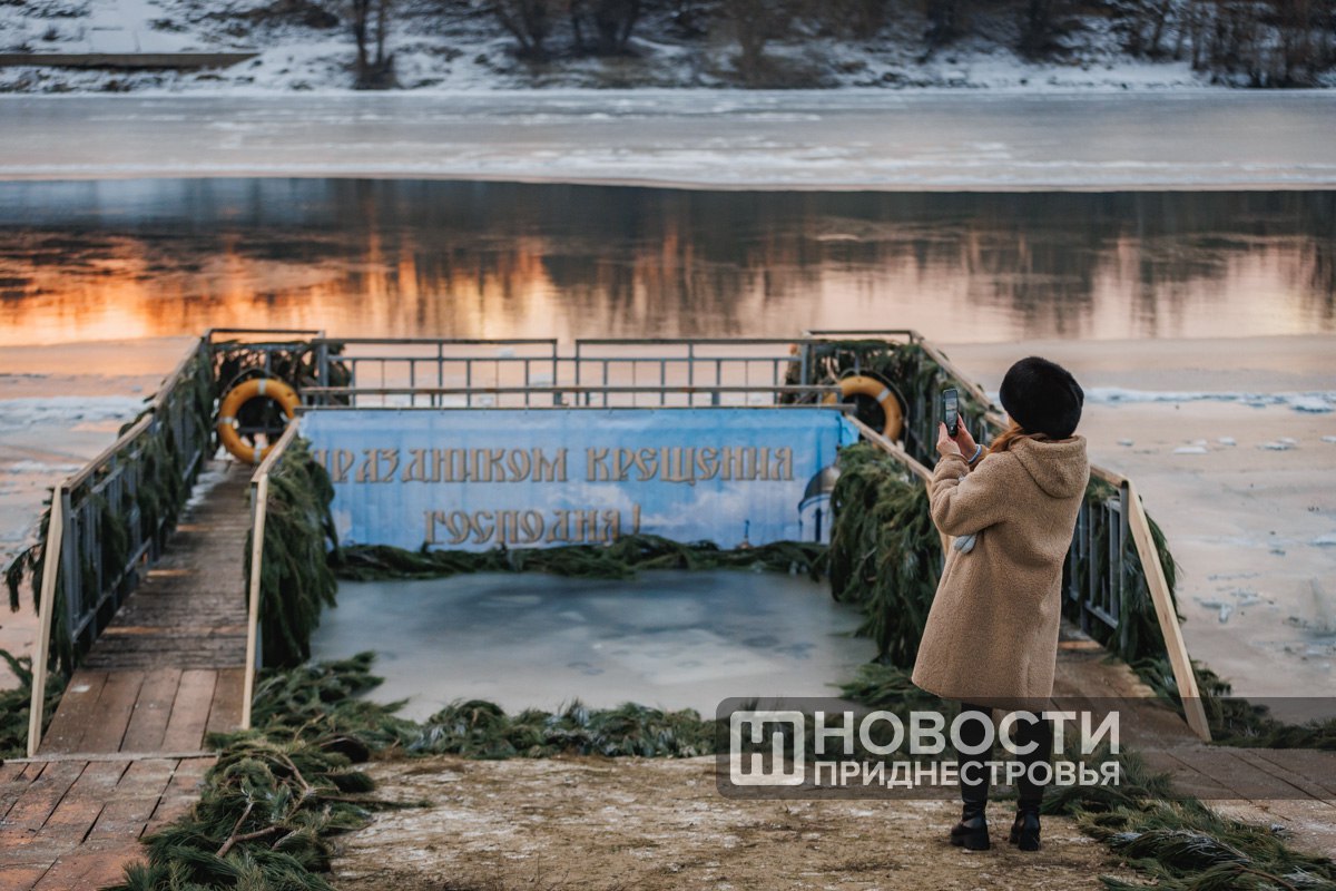 Холодная вода, оранжевый рассвет и лёд на Днестре: фоторепортаж с крещенских купаний в Тирасполе