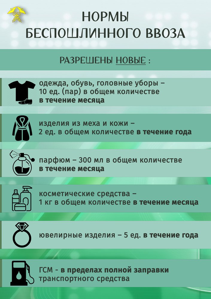 С полным Перечнем товаров для личного пользования, не облагаемых таможенными пошлинами и налогами, можно ознакомиться здесь.