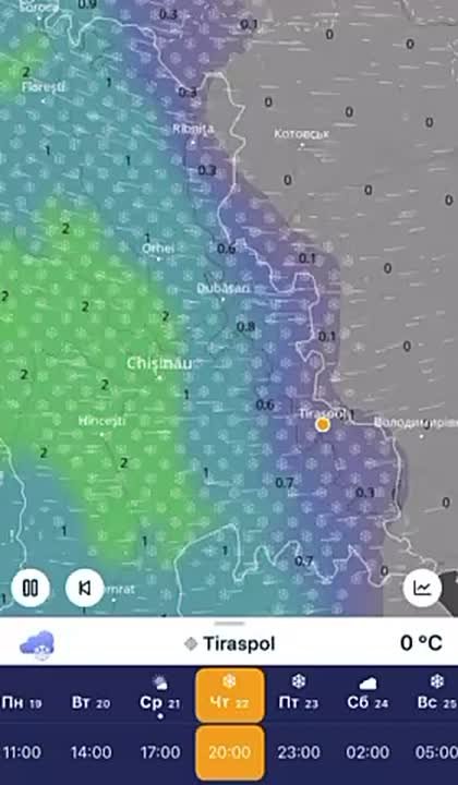 Небольшой снег по всему Приднестровью обещают метеокарты завтра вечером. По прогнозу снег продолжится до обеда пятницы. Температура будет около нуля.