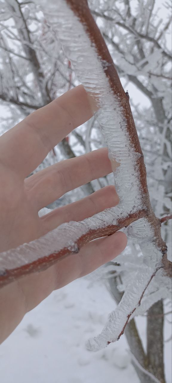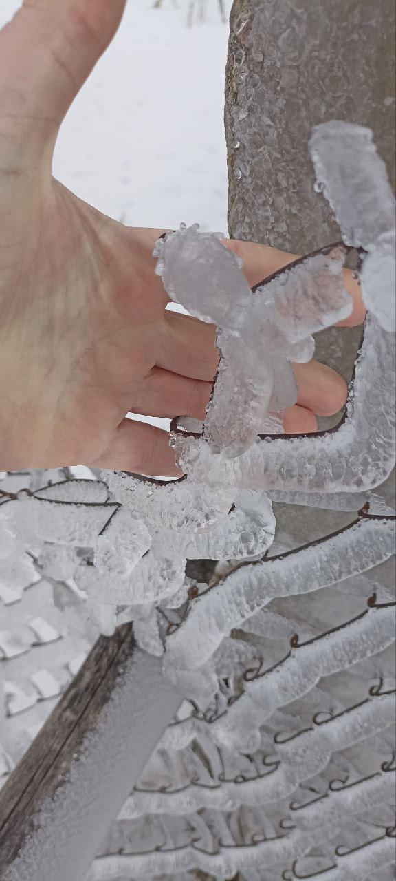 Это сфотографировали в Каменском районе, оттуда пишут, дай Бог, чтобы пронесло. В 2000 году после обледенения без света куковали 66 дней.
