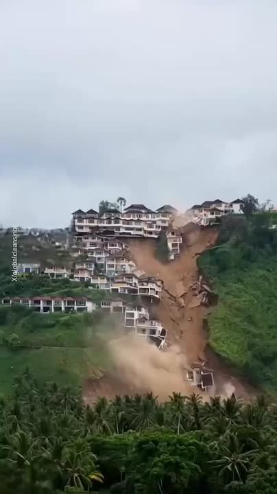 По данным СМИ, дома и дороги городка Нишами сползают со склона из-за оползня после проливных дождей. Мэр назвал ситуацию «драматической».