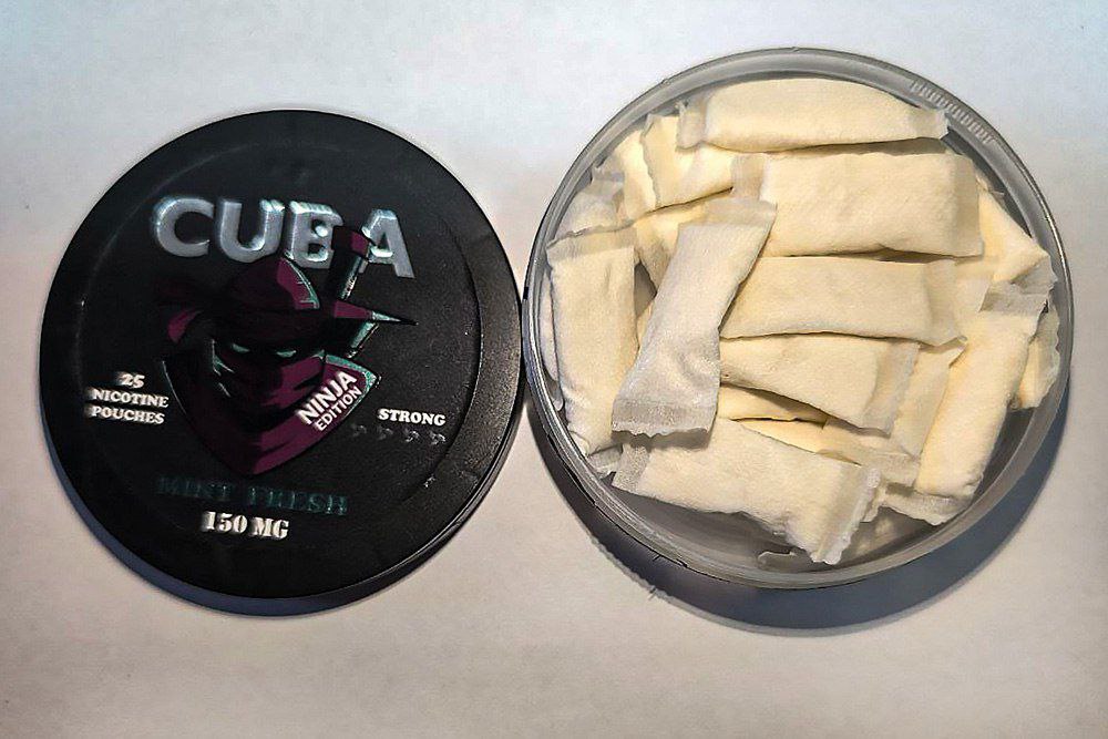 Выявили 57 банок бестабачной никотинсодержащей продукции — по 25 порций в каждой, с экстремально высоким содержанием никотина (150 мг/г), опасным для здоровья.