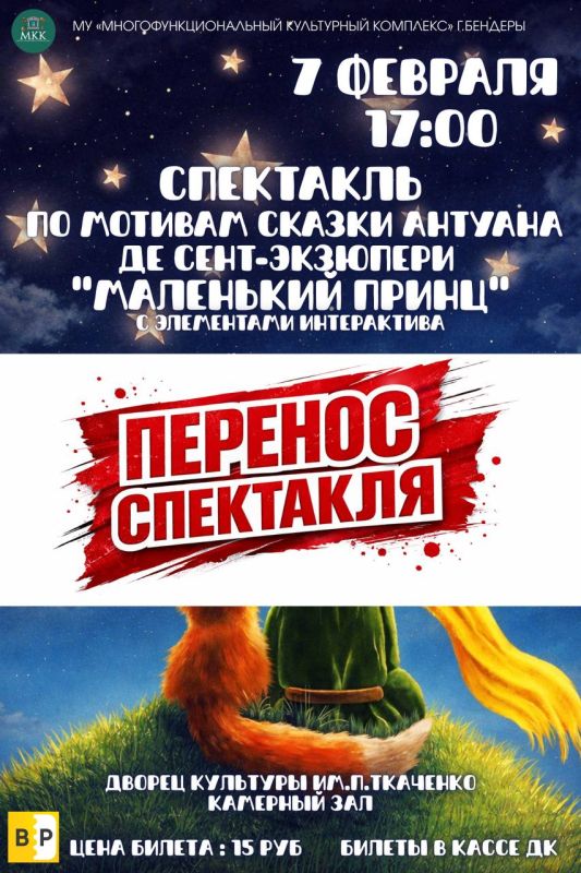 Сообщаем, что спектакль переносится на 14 марта по состоянию здоровья детей — исполнителей главных ролей.