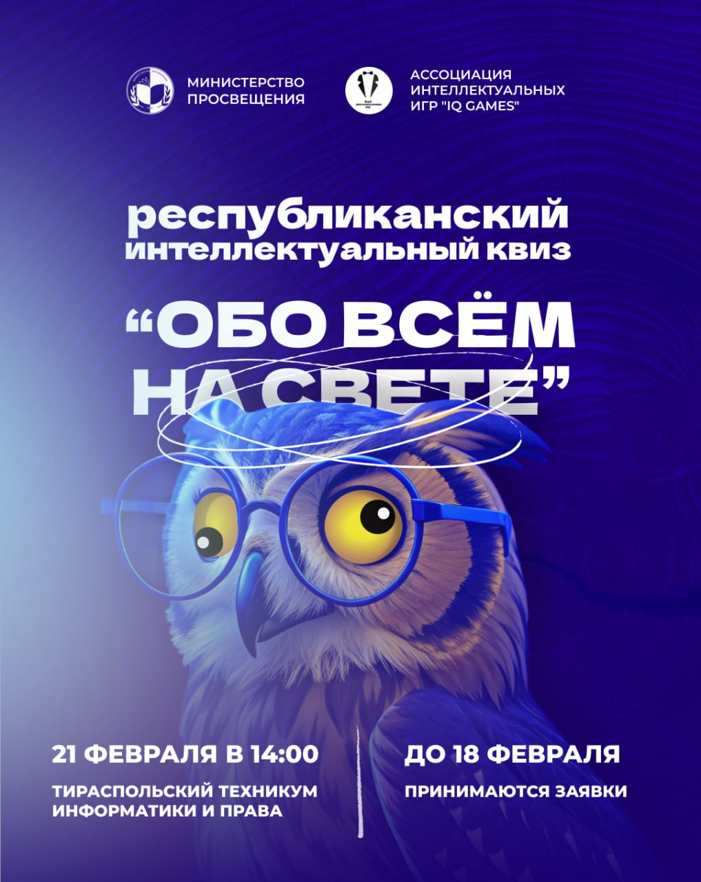 Минпросвещения ПМР и Ассоциация интеллектуальных игр Тирасполя «IQ GAMES» приглашают молодежь Приднестровья на интеллектуальный квиз "Обо всем на свете!".