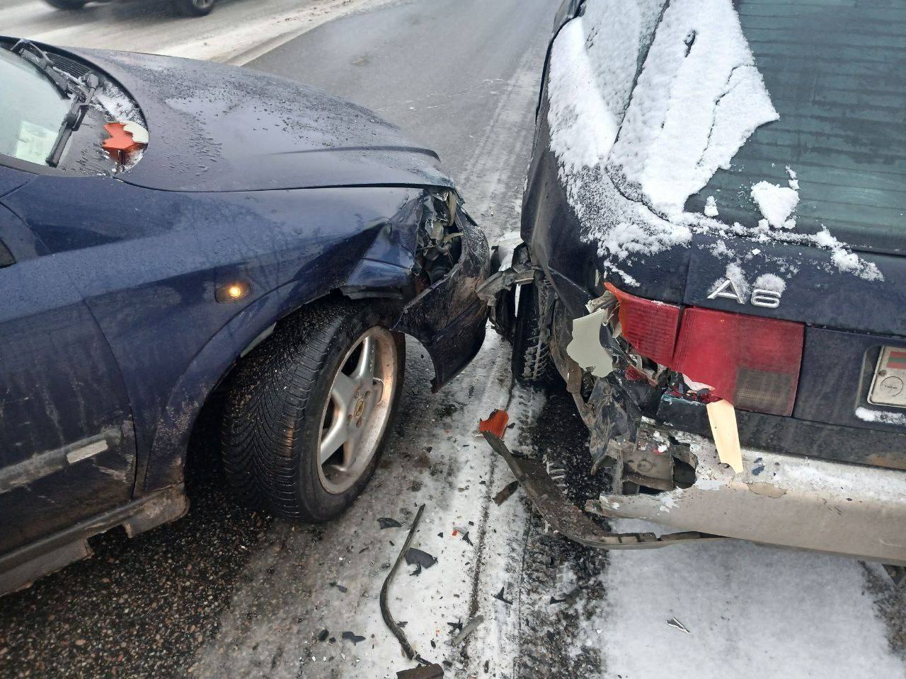 Причины — гололёд и несоблюдение дистанции. Сначала столкнулись «Ауди» и «Опель». Из-за образовавшегося затора «Ситроен» притормозил, и в него въехал микроавтобус «Фольксваген». Затем при объезде аварии «Тойоту» сзади догнала «Мазда» — машину занесло на скользкой дороге.