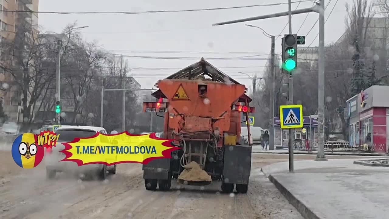 Российская техника раскидывает песок по всему Кишинёву
