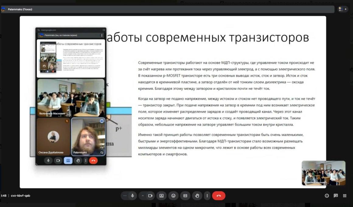 Центральным событием встречи стало онлайн-выступление Максима Олеговича Паламарчука, сотрудника Института силовой электроники и фотоники (г. Санкт-Петербург).