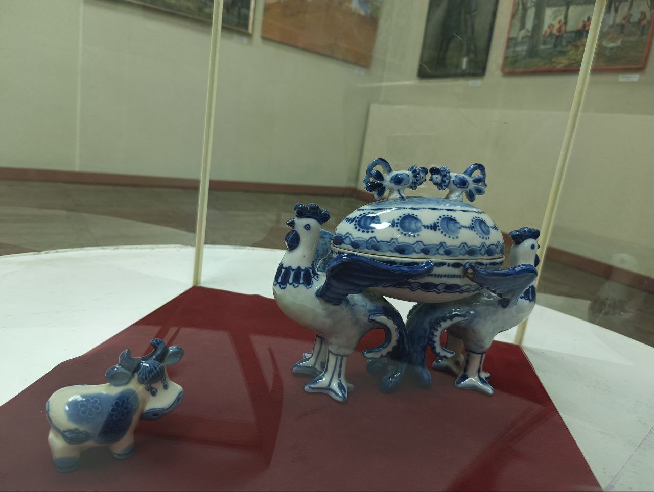 На занятиях в художественном музее ребята осваивали технику гжель: сначала знакомились с экспонатами из музейных фондов, а потом создавали свои собственные бело-синие шедевры.