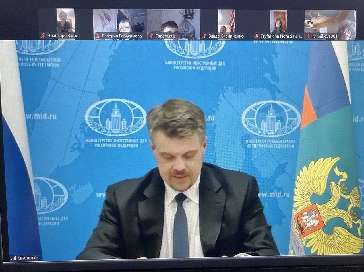 Сегодня ученики Тираспольской гуманитарно -математической гимназии вместе с преподавателями истории и обществознания стали участниками масштабной онлайн-встречи, посвящённой Дню дипломатического работника.