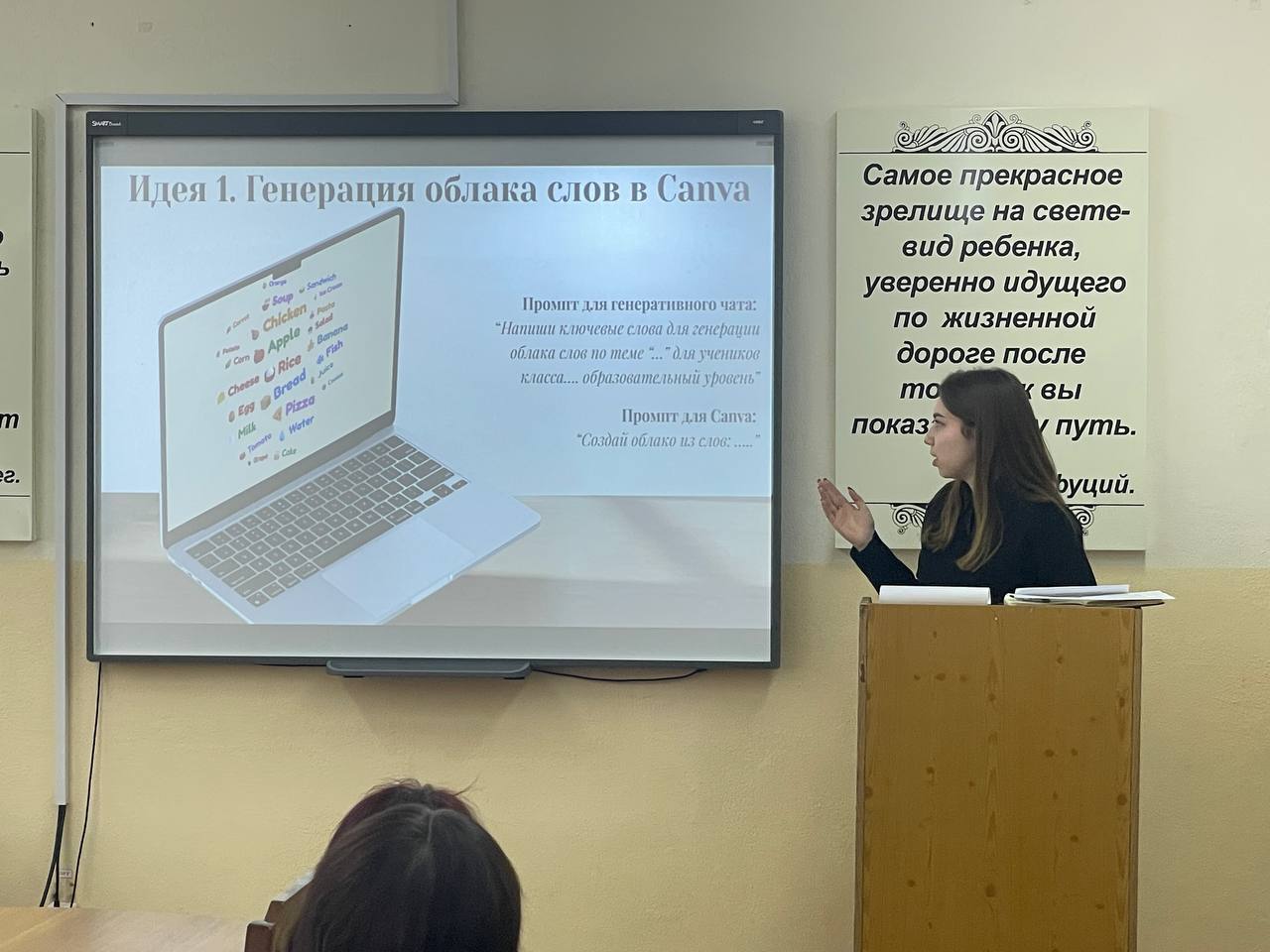 Ключевым этапом семинара стал практикум по конструированию современного урока, в ходе которого участники освоили создание конспекта урока, презентаций, инфографики, таблиц, тестов, карточек заданий и интерактивных упражнений с применением технологий искусственного интеллекта. Семинар прошёл на высоком методическом уровне.
