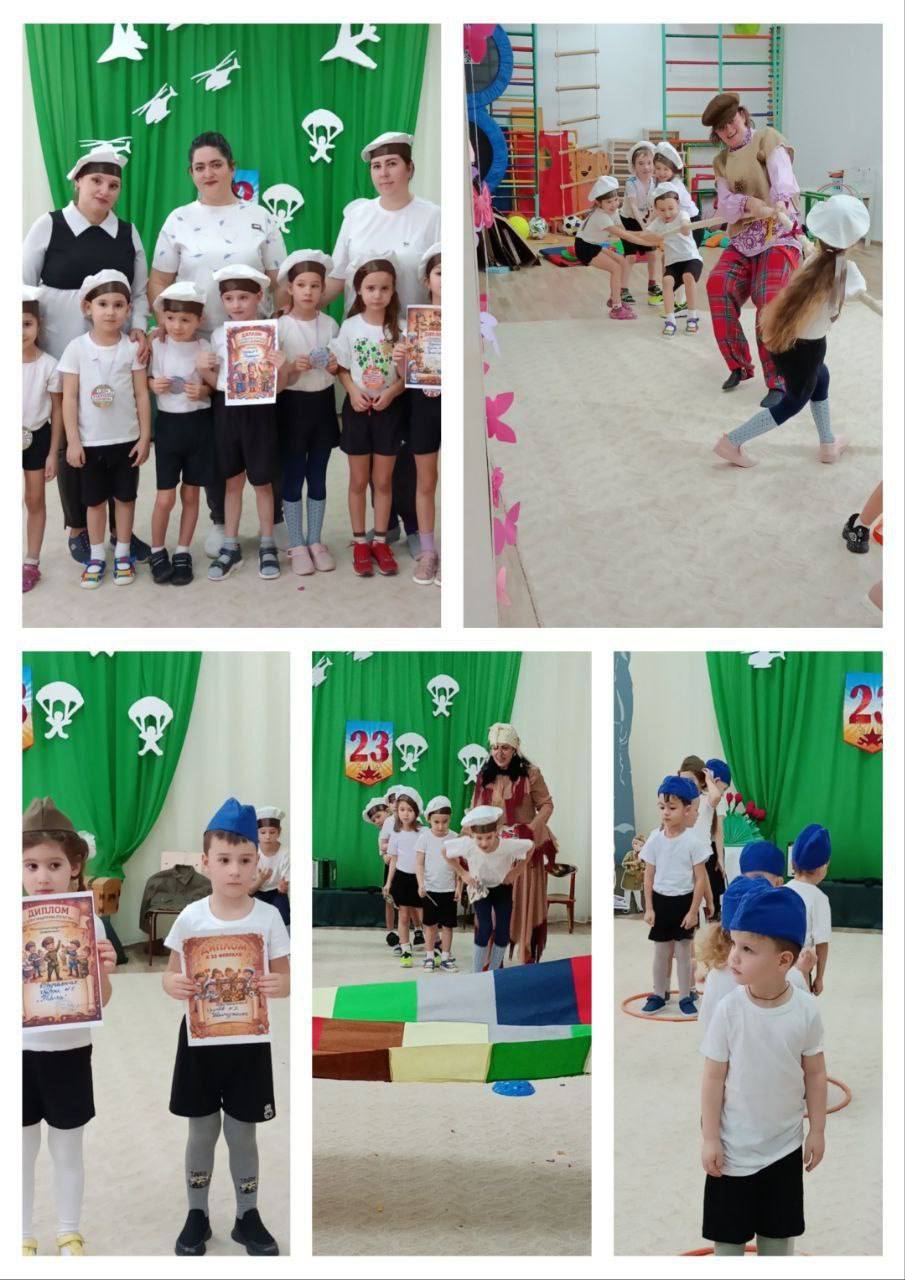 В МДОУ № 1 «Берёзка» состоялось музыкально-спортивное развлечение «Бравые солдаты» с играми, эстафетами и активным участием родителей. Праздник прошёл в тёплой и дружеской атмосфере.
