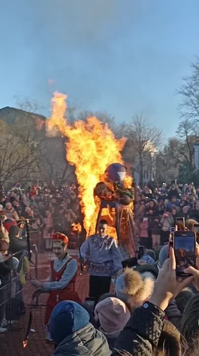 Кульминацией стало сожжение трёхметровой Марены — символического чучела зимы. По народной традиции этот обряд символизирует прощание с холодным временем года и призыв тепла и обновления.