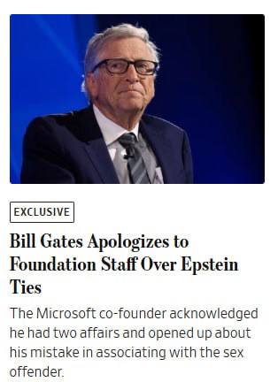 Билл Гейтс признался в супружеских изменах с россиянками и извинился за связи с осуждённым за сексуальные преступления Эпштейном, — Wall Street Journal.