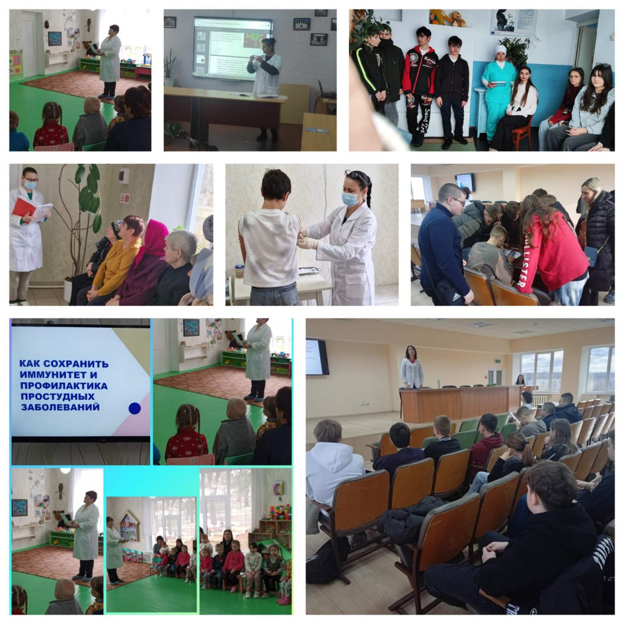 Медицинские работники районной больницы организовали просветительские мероприятия для школьников, воспитанников детских садов и взрослого населения на темы укрепления иммунитета, профилактики заболеваний, важности вакцинации и здорового образа жизни. Населению читались лекции, организованы викторины и конкурсы. Охват составил 136 человек.