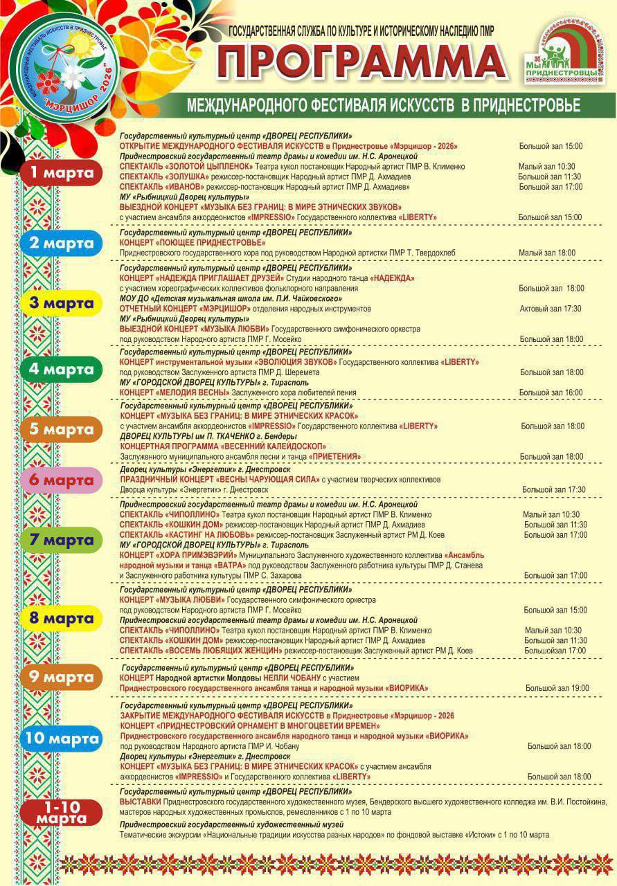 В Приднестровье 1 марта стартует десятидневный фестиваль искусств «Мэрцишор-2026»