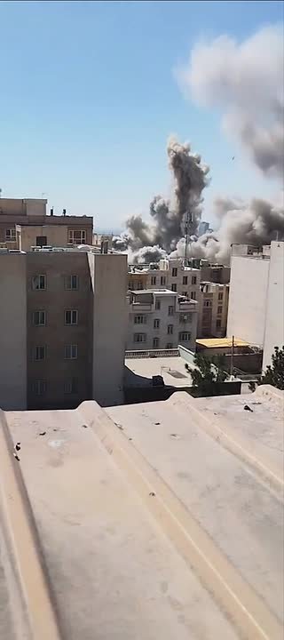 СМИ публикуют кадры, на которых три израильские ракеты с высокоточным наведением поражают иранский командный центр в Тегеране.