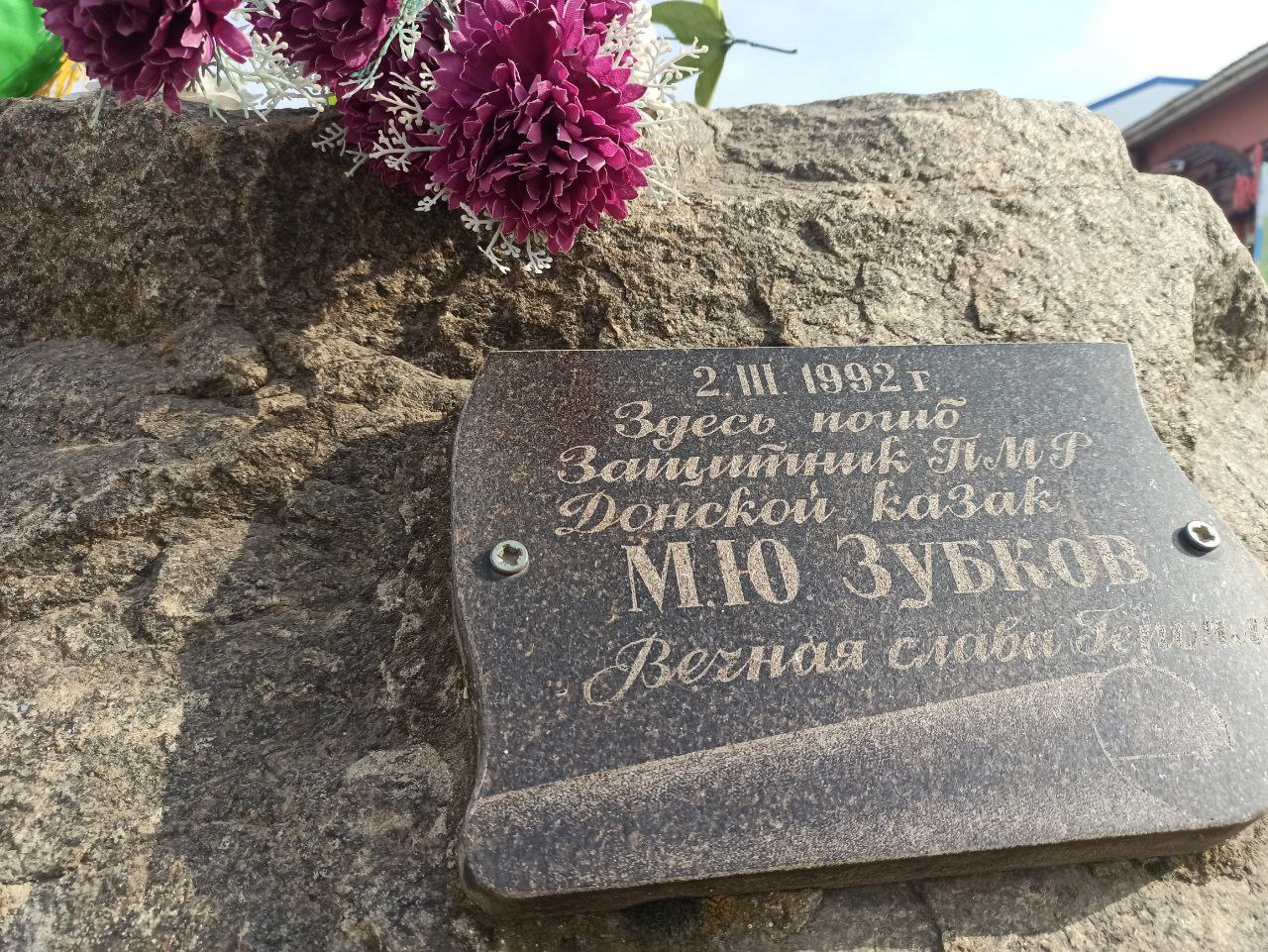 Церемония возложения цветов прошла и у гранитного знака, установленного в память о донском казаке-добровольце Михаиле Зубкове, который погиб 2 марта 1992 года